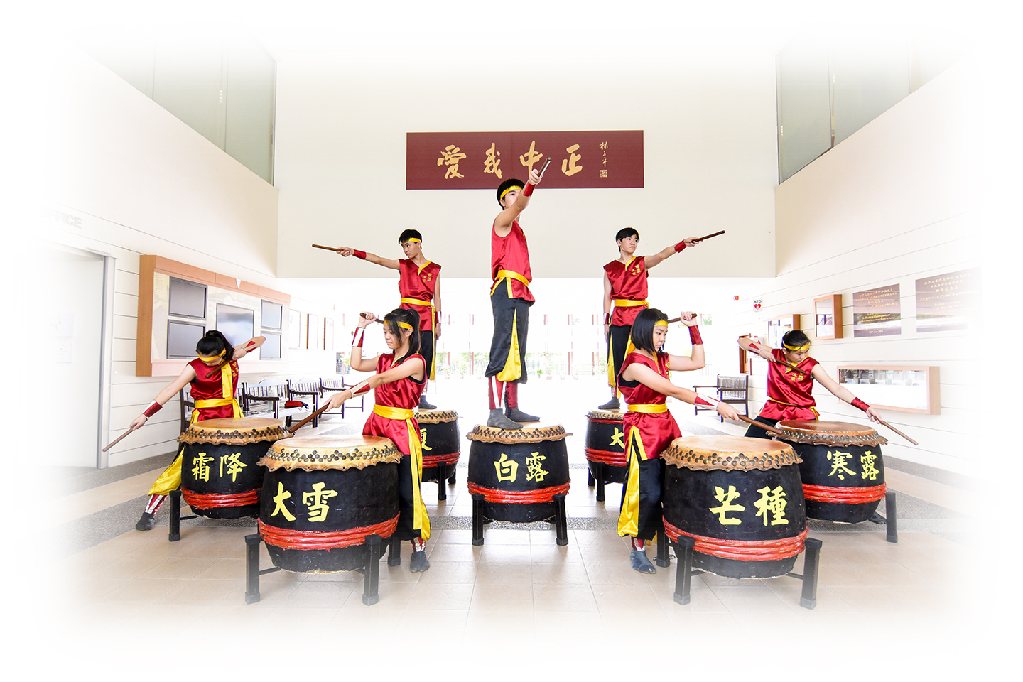 Our Group is unique in that our performing style is based on the combination of the Wushu (Chinese Martial Arts), calligraphy and dance. The Festival Drum Group is not only a performing group but a CCA group that emphasizes a lot on discipline, character building and teamwork as well as a well-balanced and happy life. A positive attitude on the part of the members is essential for learning and character building.
