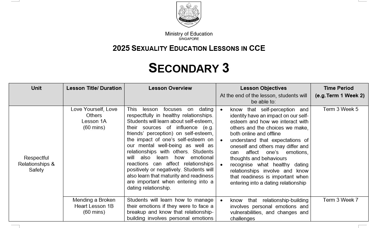 You may click here for more information on MOE Sexuality Education.